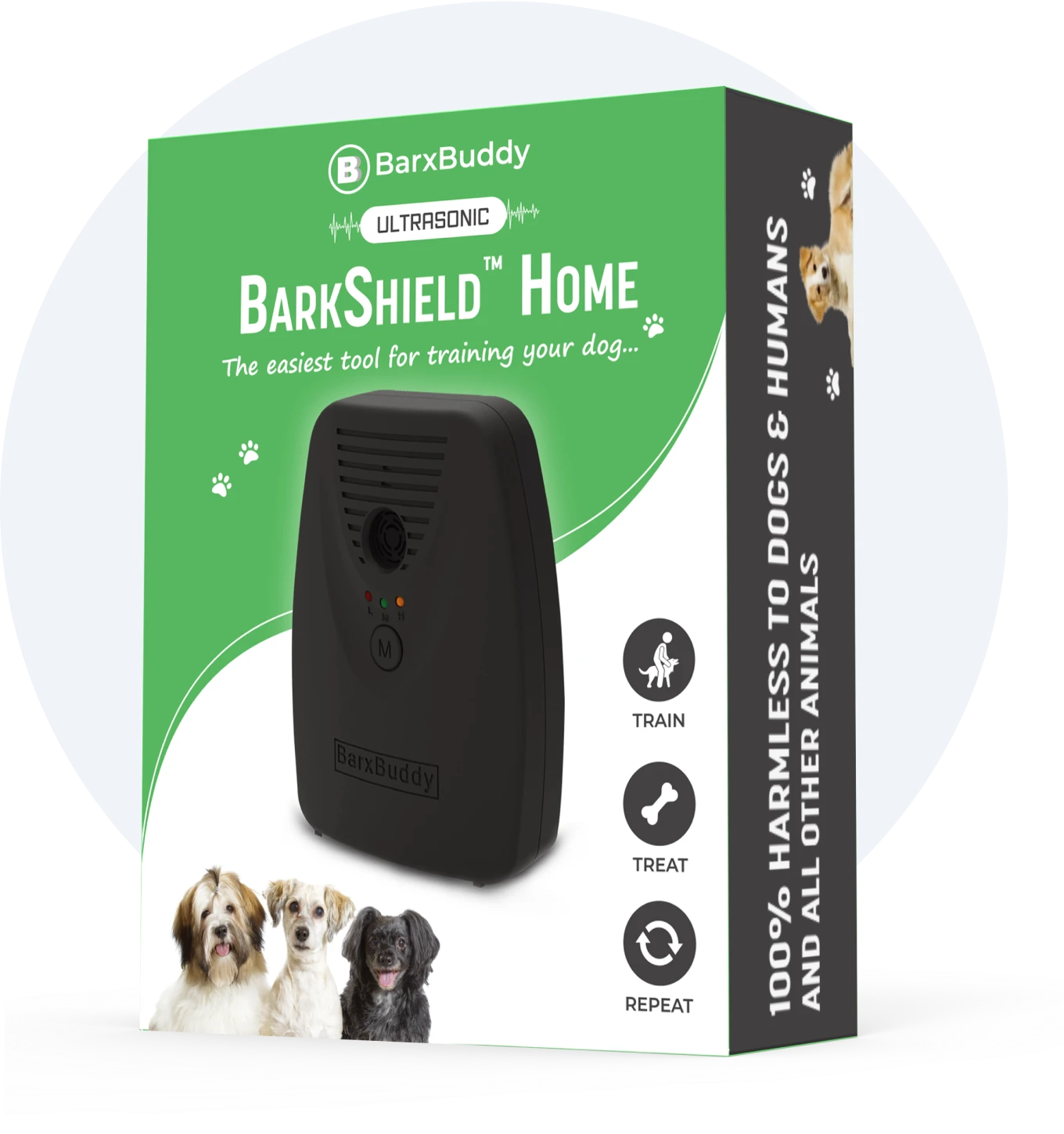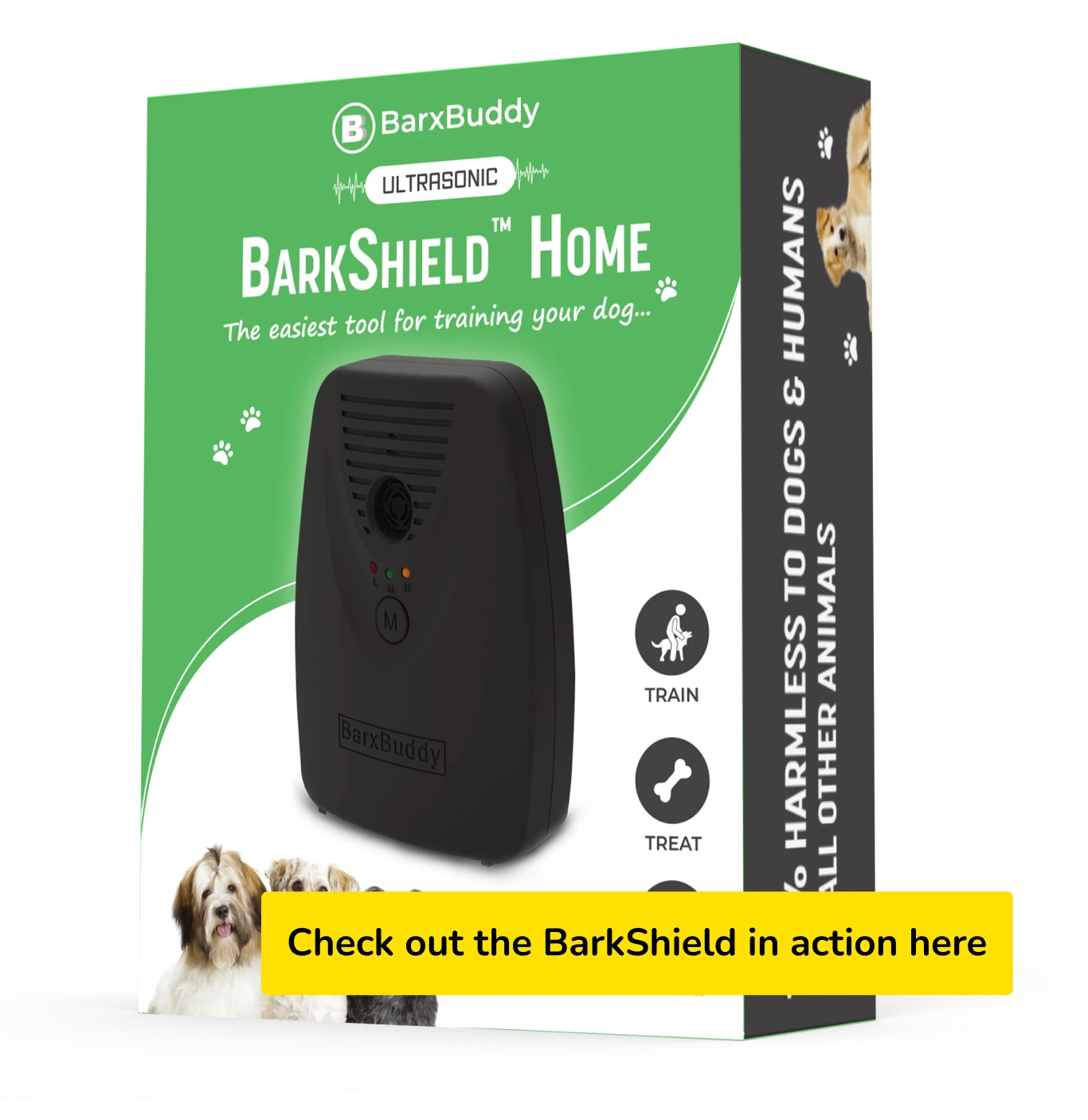 The BarkShield is completely harmless for dogs, humans, and all animals. The lights and ultrasonic tone are 100% painless, and won’t hurt your dog in any way.