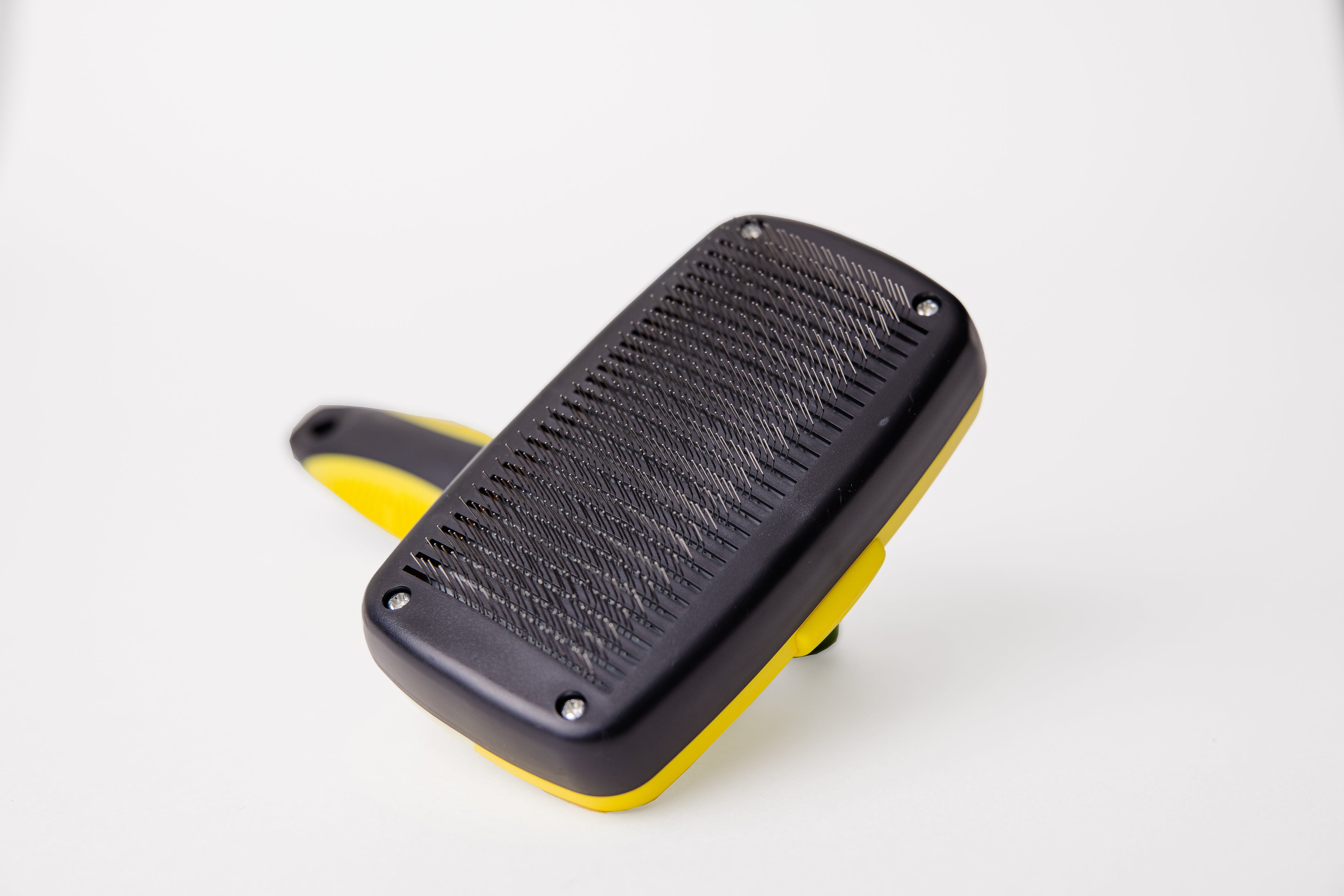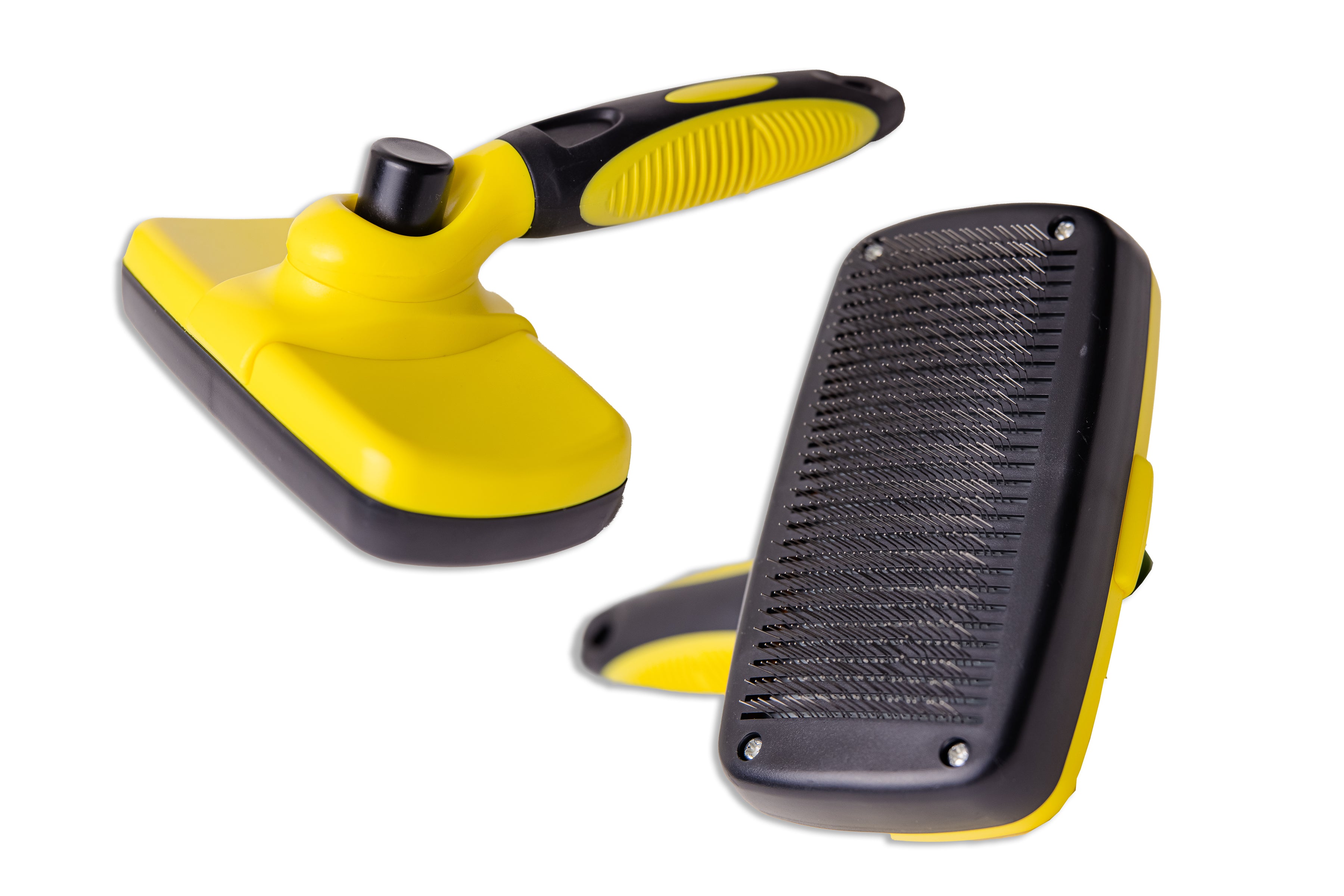 The best dog brush is one that helps reduce shedding and is easy to clean. If you are looking for a dog shedding tool and grooming brush, this self-cleaning dog brush is an all-in-one dog hair brush that can be used on a variety of breeds, as well as cats. The BarxBuddy self-cleaning dog brush is lightweight, easy to use and, most importantly, easy to clean! It is the best deshedding tool for dogs that we have found, thanks to the comfort-grip handle and push-button self-cleaning feature. The BarxBuddy deshedding brush can be used on short-hair dogs, long-hair dogs, as well as to remove hair from thick undercoats. The bristles on the brush help distribute your dog’s natural oils for a shinier, healthier coat. Features